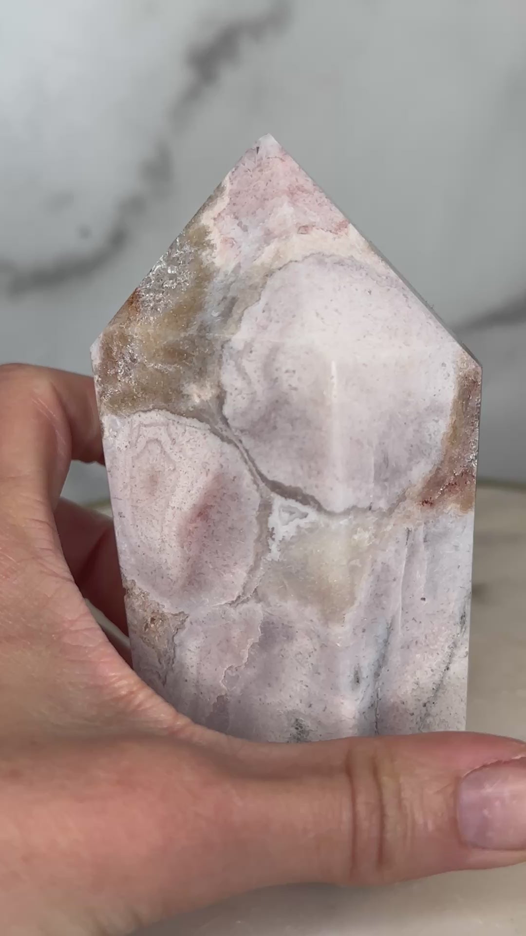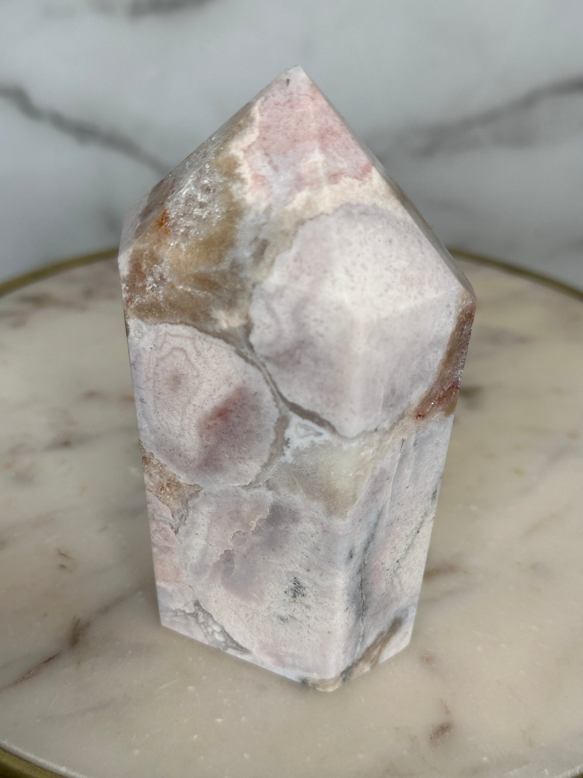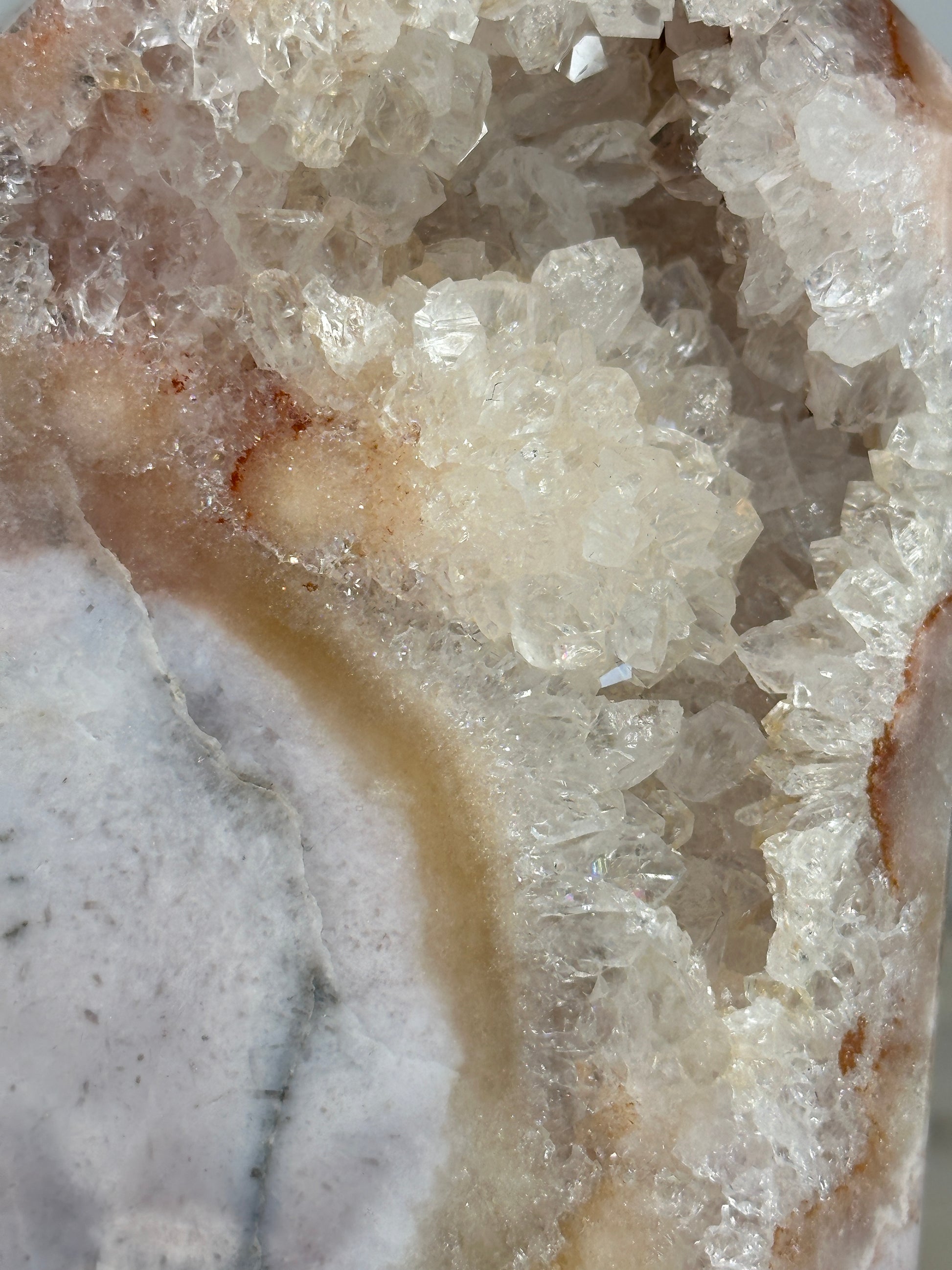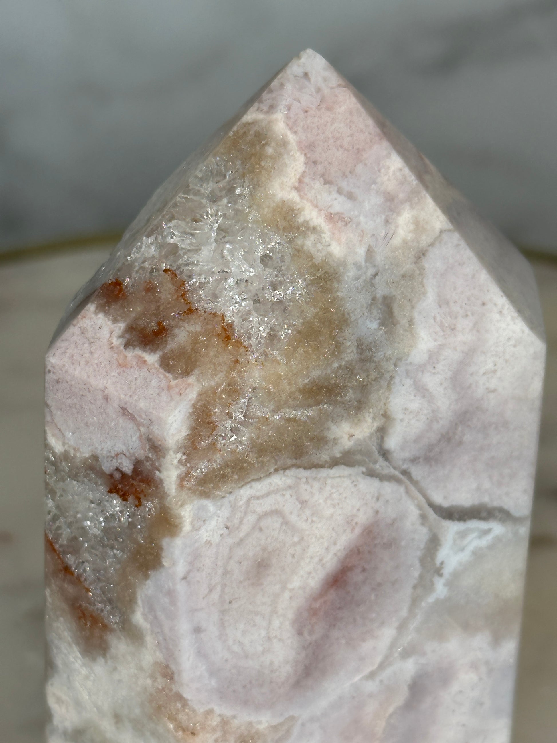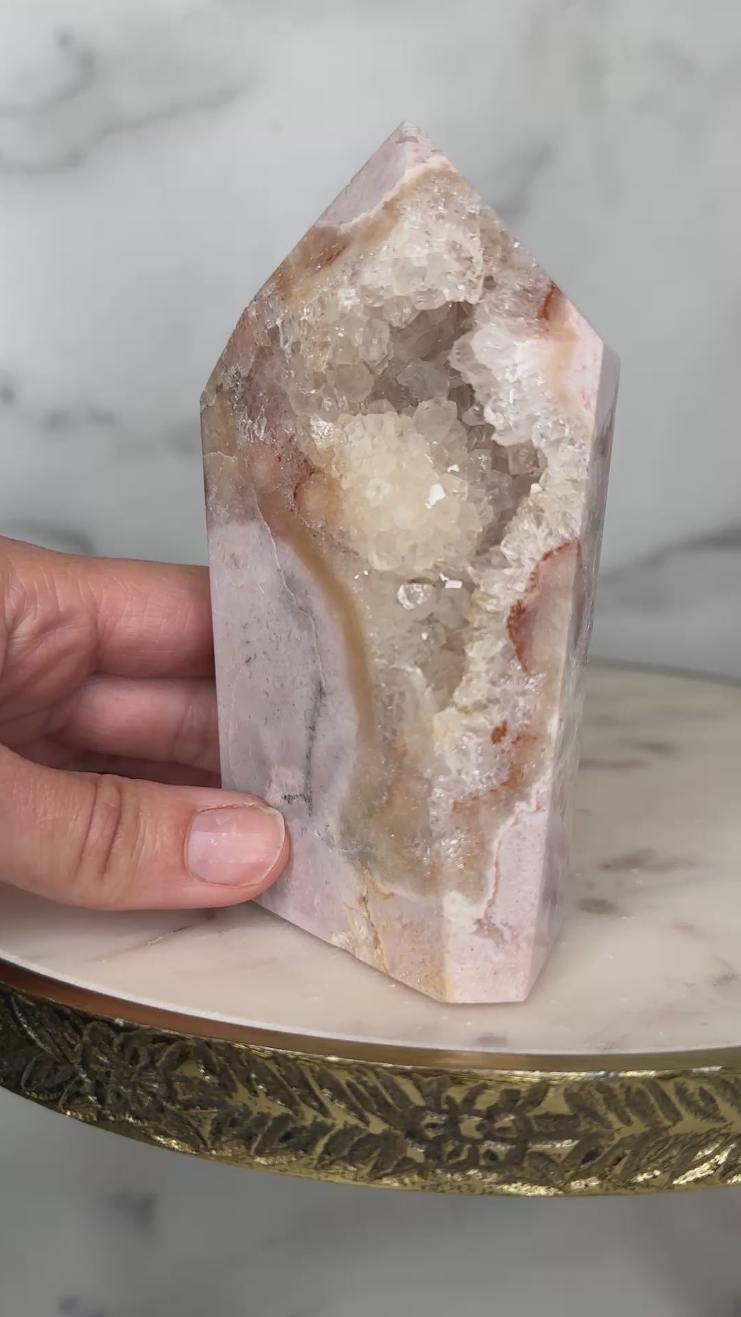 With its exceptional mosaic patterning and luminous drusy window, this piece feels like a cathedral carved by time. The intricate layers mirror the emotional strata we carry — memories, lessons, strength.