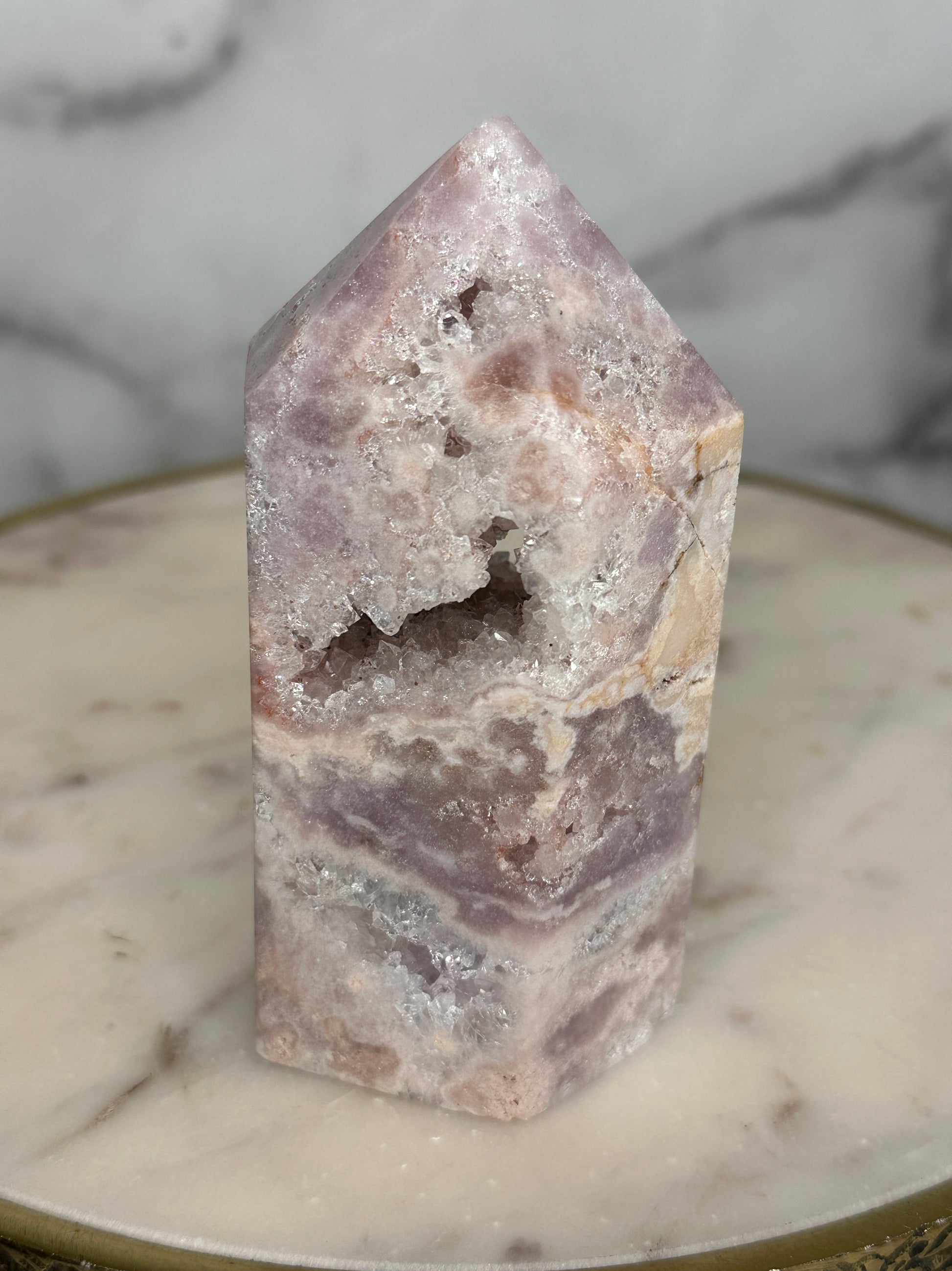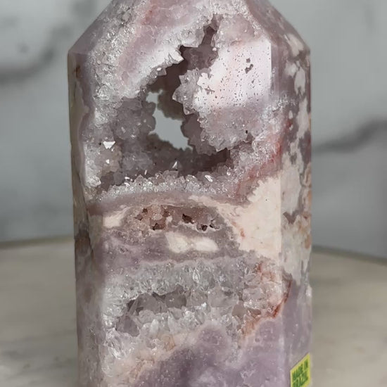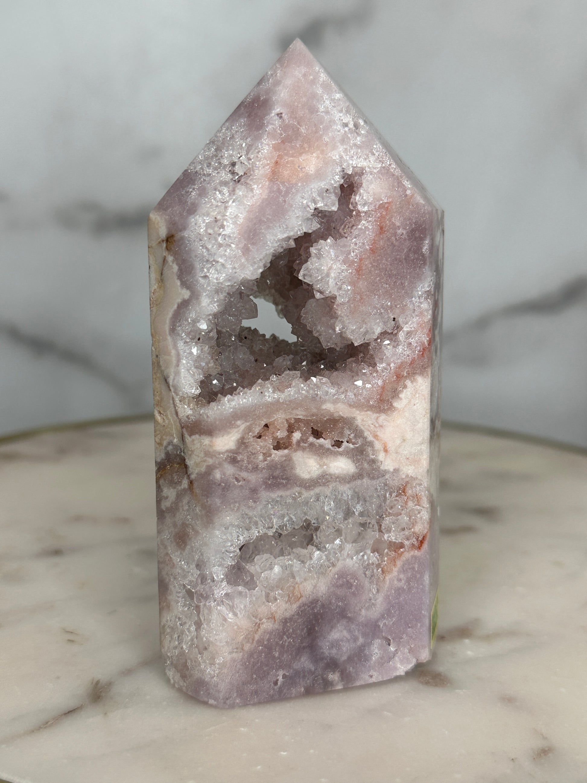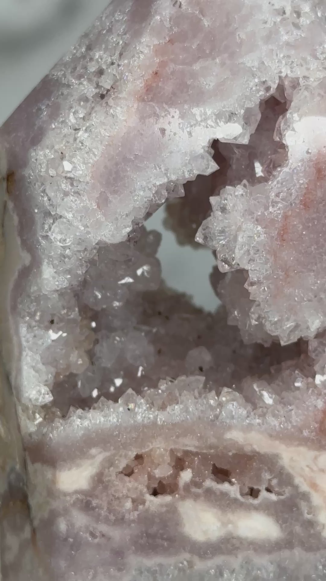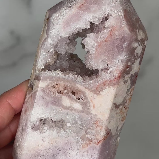 Next Chapter is a portal piece in every sense — a crystalline doorway carved by time itself. Its soft, feminine energy gently dissolves old armor, inviting the keeper to soften, open, and step forward into a new era of self-trust, expansion, and aligned opportunity. This is a stone for the woman becoming — shedding, blooming, and allowing herself to be fully seen.