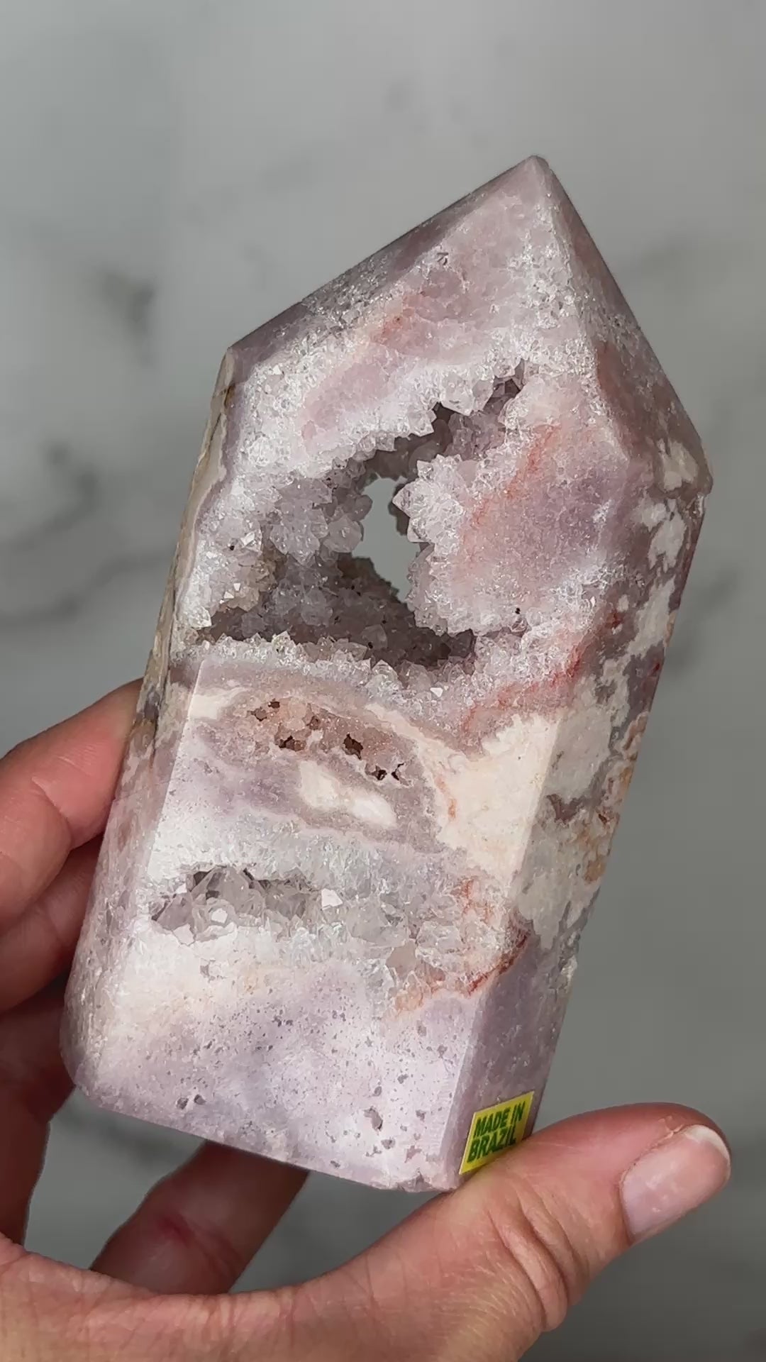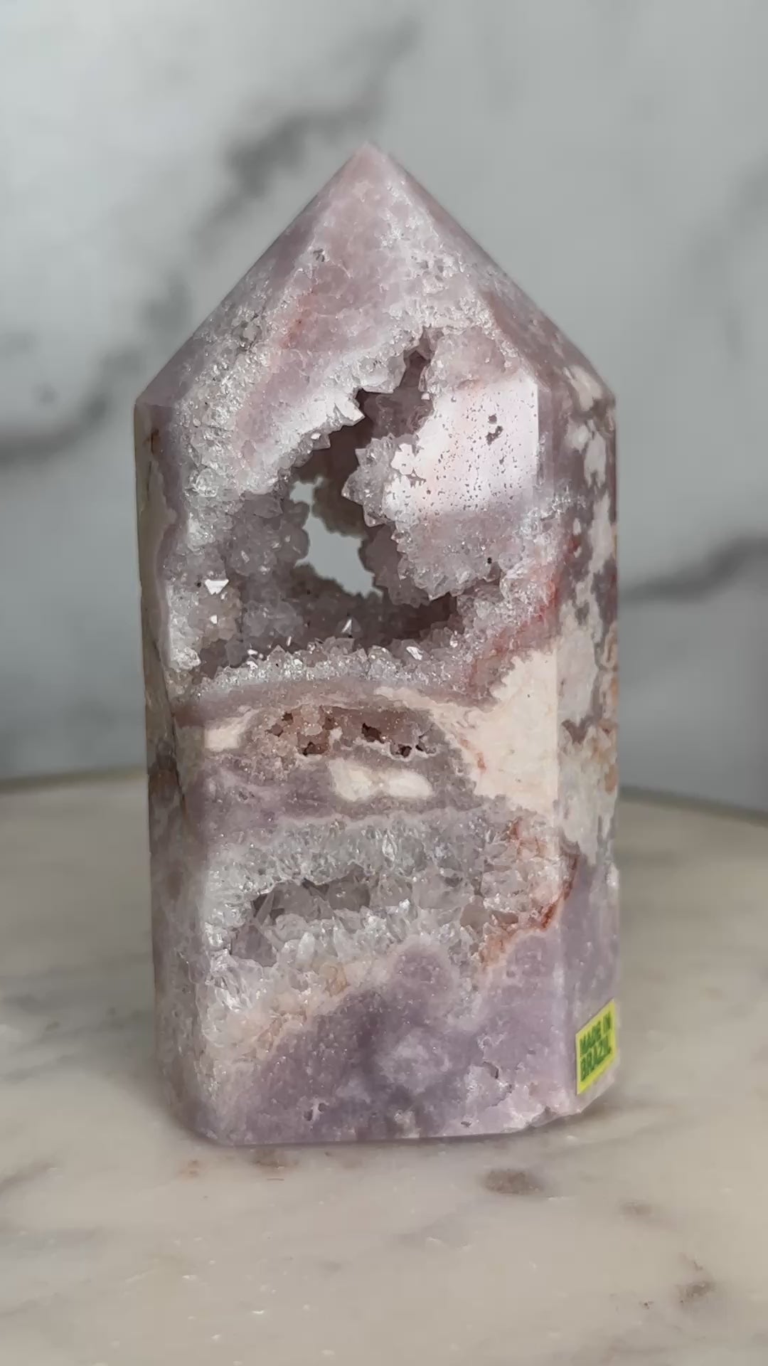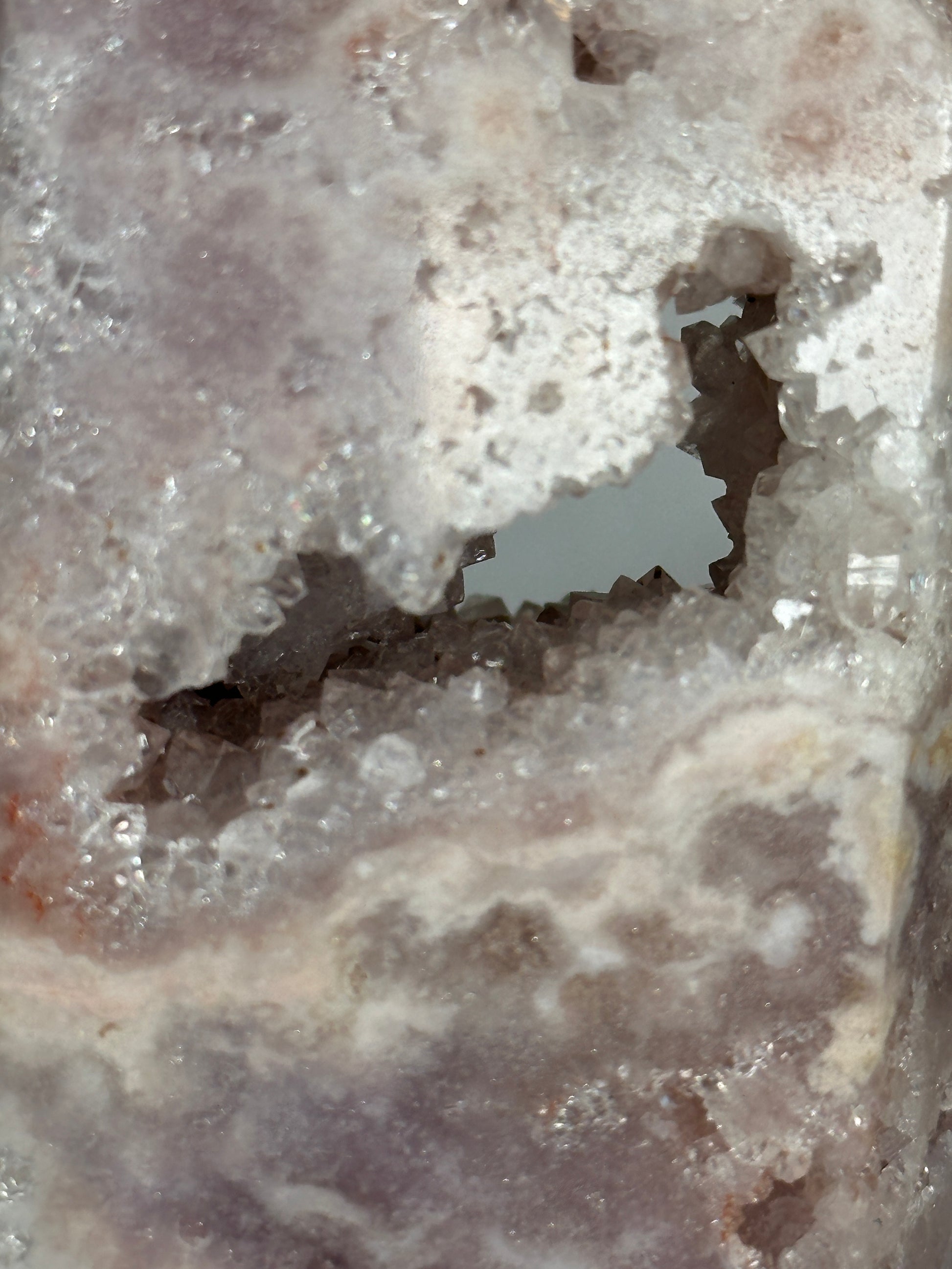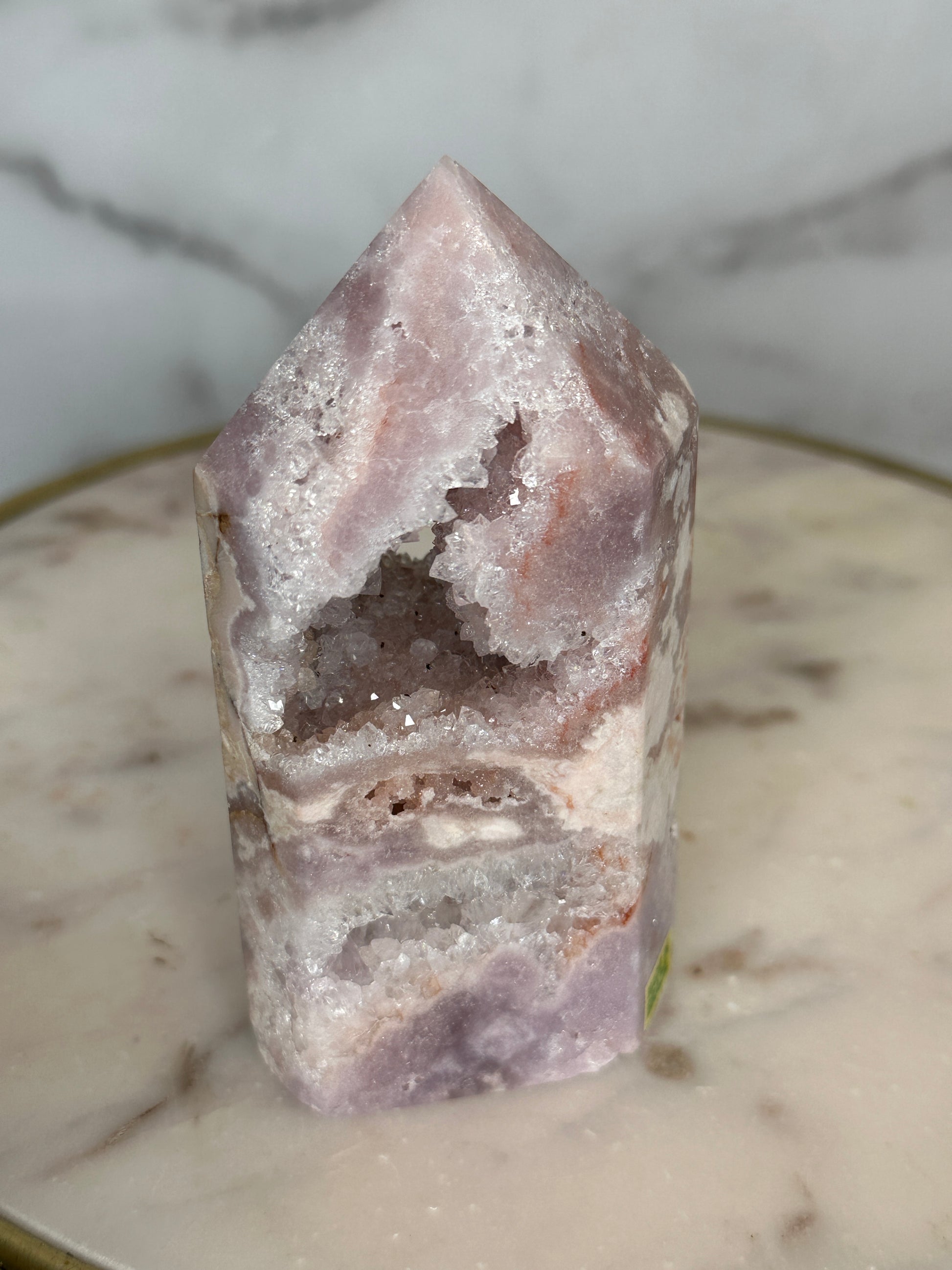 Next Chapter is a portal piece in every sense — a crystalline doorway carved by time itself. Its soft, feminine energy gently dissolves old armor, inviting the keeper to soften, open, and step forward into a new era of self-trust, expansion, and aligned opportunity. This is a stone for the woman becoming — shedding, blooming, and allowing herself to be fully seen.